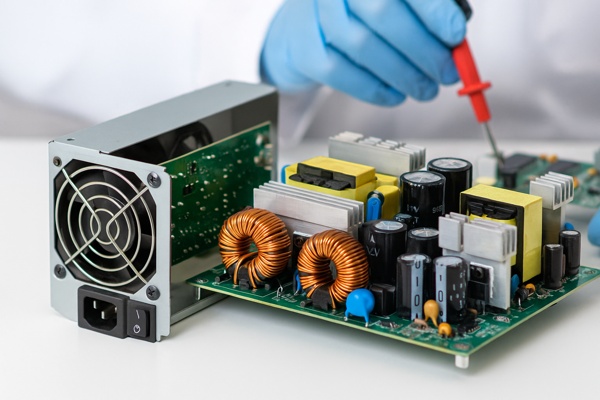 Измеряются уровни выходного напряжения, оценивается стабильность, проверяются защитные цепи (OCP, OVP, OTP).